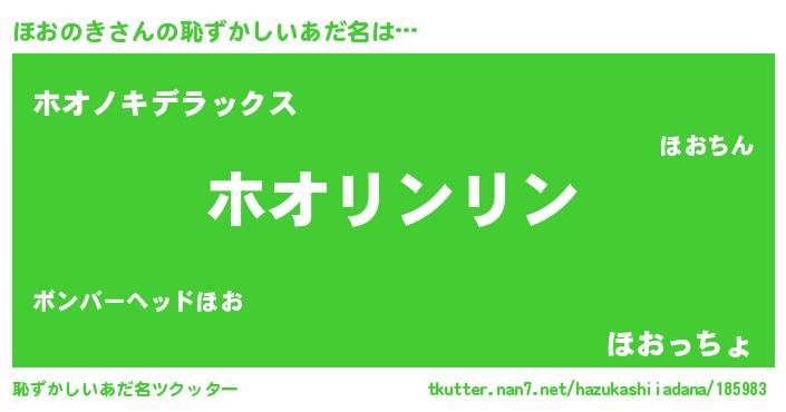| ポケモン風あだ名 | 『ホオキング』『ヒホオノキ』 |