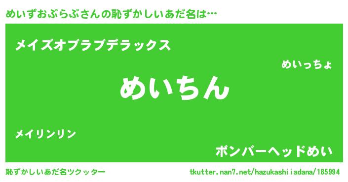 | 意味不明あだ名 | 『永久保存めいずおぶらぶ』 |