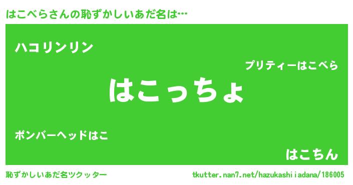 | ヘコむあだ名 | 『豆乳』『はこっぺ』『はこっふぃ~』 |
