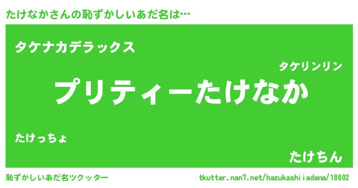 | 男性向けラノベタイトル風あだ名 | 『たけなかに滅ぼされるだけの簡単なお仕事です』 |