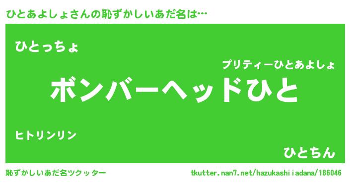 | ヒーロー風カッコイイあだ名 | 『仮面ヒトダー』『愛の使者ひとあよしょ』 |