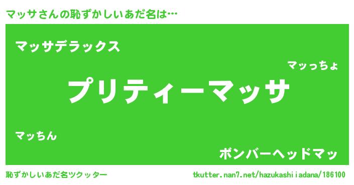 | 女子向けラノベタイトル風あだ名 | 『マッサの玉の輿計画!』『マッサ恋絵巻』 |