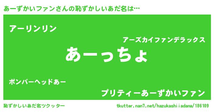 | 意味不明あだ名 | 『あーずかいファンフォーエバー』 |