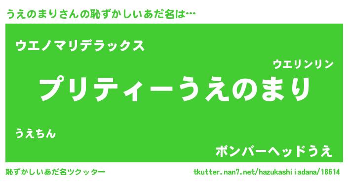 | 意味不明あだ名 | 『ペロリンうえのまり』『自称うえのまり』 |