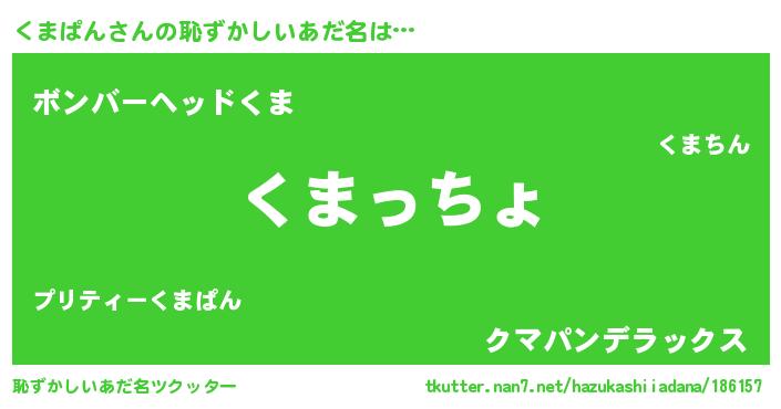 | ヒーロー風カッコイイあだ名 | 『ウルトラくまぱんマン』『ネオクマパン』 |