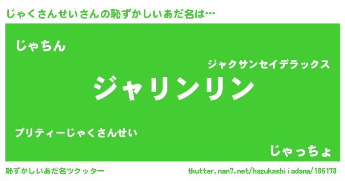 | 可愛いあだ名 | 『じっゃぃー』『じゃくさんせいママ』 |