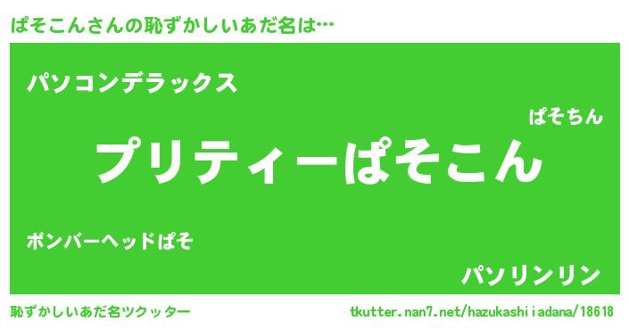 | ヘコむあだ名 | 『ぱそにー』『ぱそを』『酢こんぶ』 |