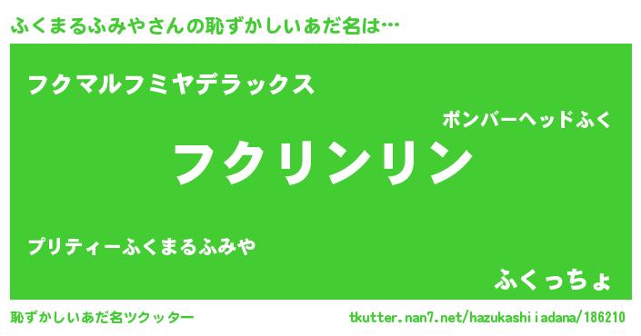 | 男性向けラノベタイトル風あだ名 | 『ふくまるふみやの嫁は女の子じゃないと思った?』 |