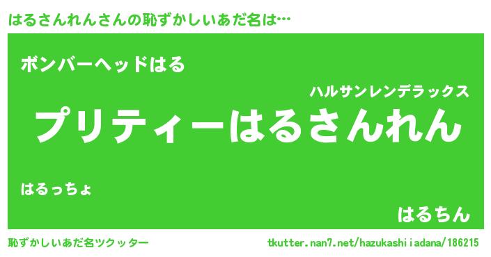 | 男性向けラノベタイトル風あだ名 | 『ハルサンレンアートオンライン』 |