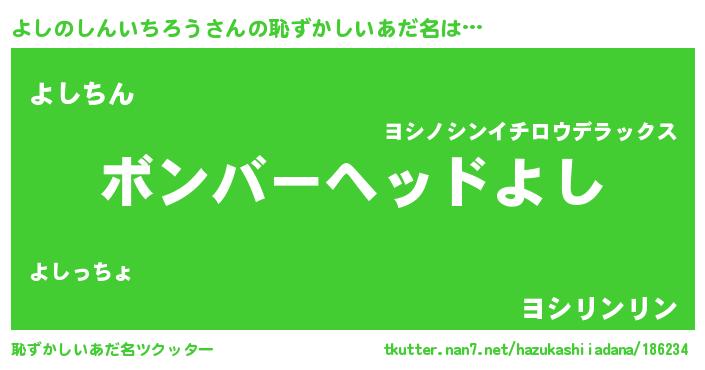 | 意味不明あだ名 | 『眠気覚ましガムよしのしんいちろう味』 |