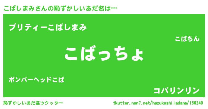 | ヘコむあだ名 | 『なまこ酢』『こばにゅー』 |