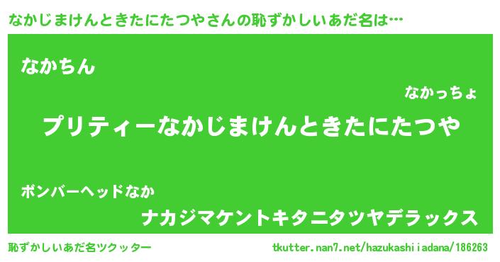 | 男性向けラノベタイトル風あだ名 | 『ナカジマケントキタニタツヤアートオンライン』 |