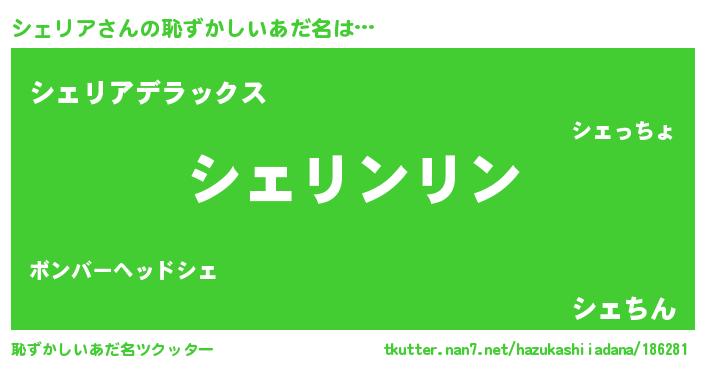 | ヘコむあだ名 | 『シェお』『シェリア(震え声)』 |