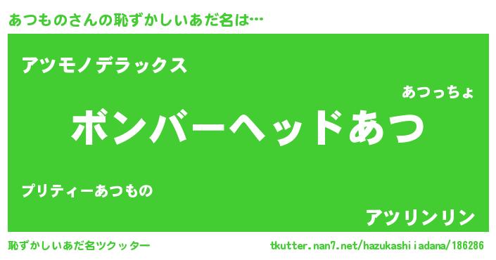 | ヒーロー風カッコイイあだ名 | 『正義の使者あつもの』『仮面アツダー』 |