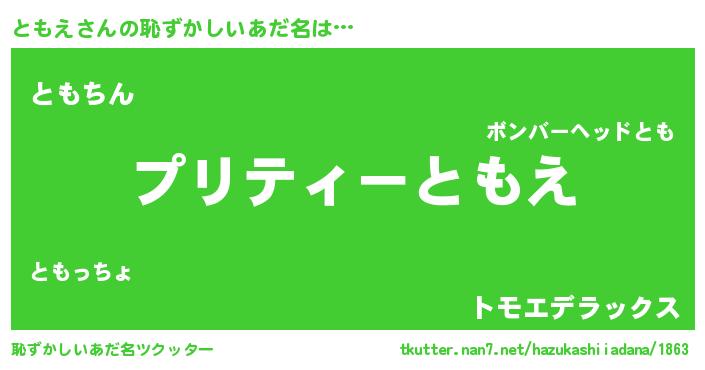 | ヒーロー風カッコイイあだ名 | 『仮面トモダー』『スーパートモエ』 |