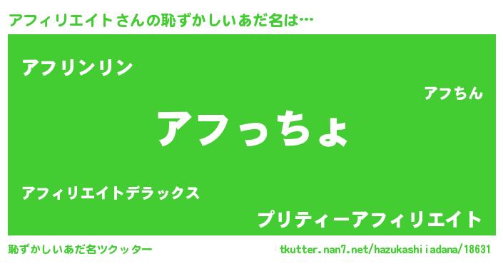 | 意味不明あだ名 | 『アフィリエイトフォーエバー』 |
