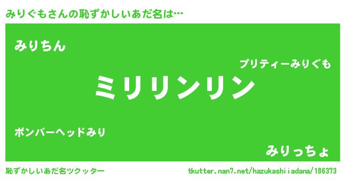 | 意味不明あだ名 | 『とにかく怪しいみりぐも』 |