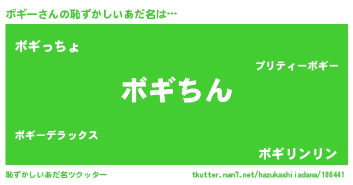 | ヘコむあだ名 | 『ボギー(苦笑)』『つくし』『ボギを』 |