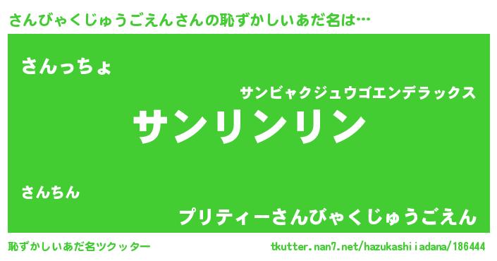 | ポケモン風あだ名 | 『ヒサンビャクジュウゴエン』『サーンイ』 |