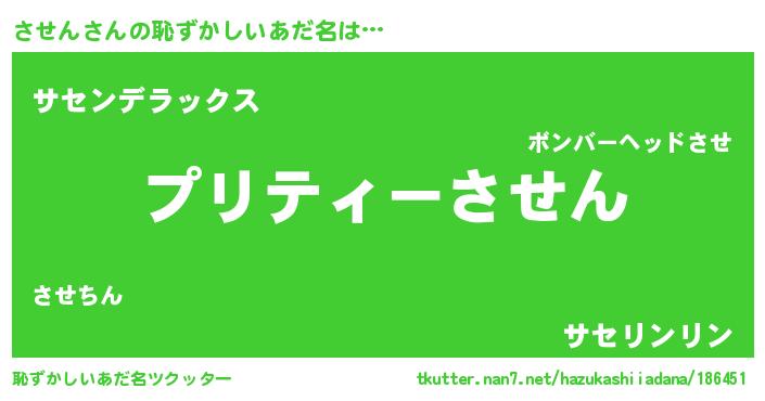 | 意味不明あだ名 | 『ペロリンさせん』『自称させん』 |