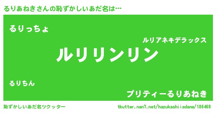 | 男性向けラノベタイトル風あだ名 | 『るりあねきの嫁は女の子じゃないと思った?』 |