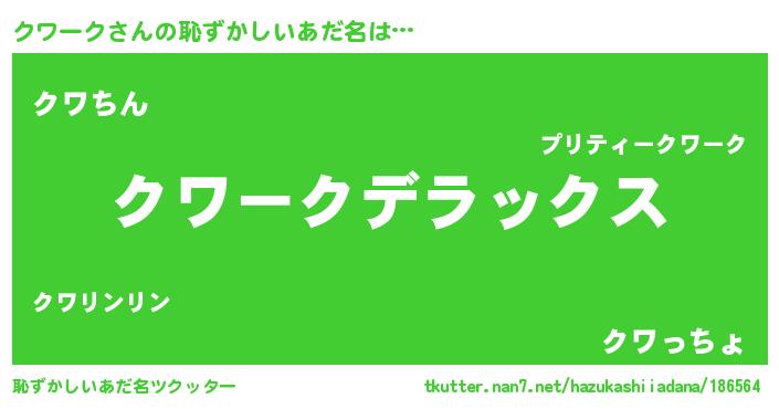 | 女子向けラノベタイトル風あだ名 | 『闇のクワーク』『クワークの雑貨屋さん』 |