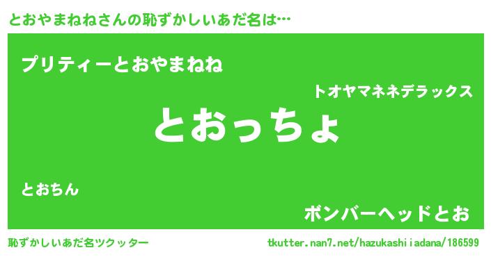 | 意味不明あだ名 | 『とおやまねねフォーエバー』 |