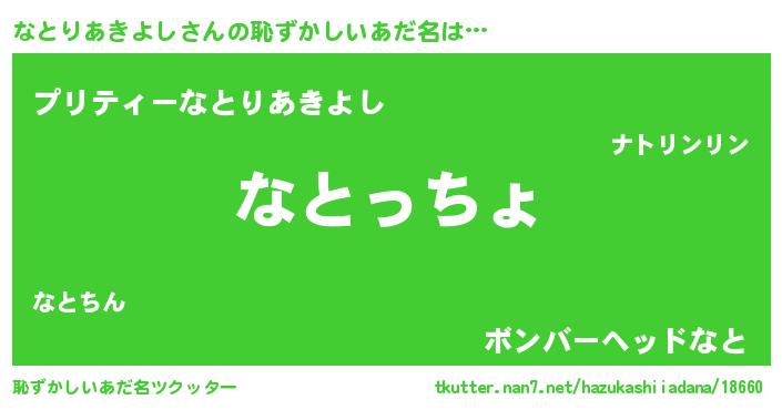 | 意味不明あだ名 | 『住所不定無職なとりあきよし(47歳)』 |