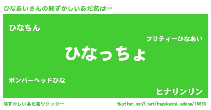 | ヒーロー風カッコイイあだ名 | 『ウルトラひなあいマン』『ネオヒナアイ』 |