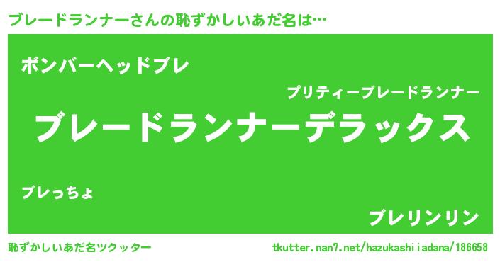 | 女子向けラノベタイトル風あだ名 | 『ブレードランナーの玉の輿計画!』 |