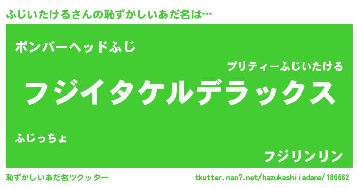 | 男性向けラノベタイトル風あだ名 | 『魔法科高校のふじいたける』 |