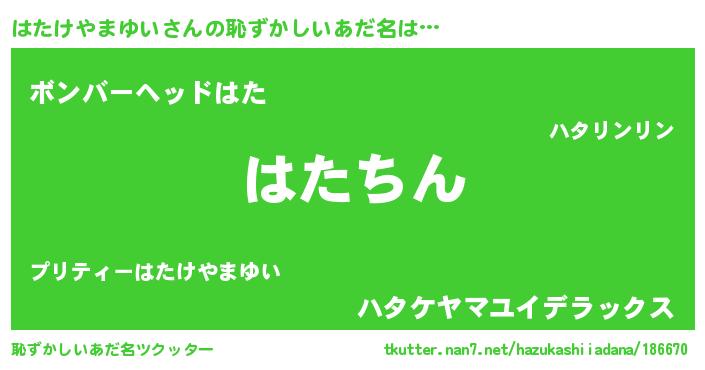 | ヒーロー風カッコイイあだ名 | 『ネオハタケヤマユイ』『仮面ハタダー』 |