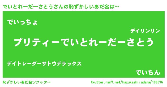 | 欧米人風あだ名 | 『ダレノガレでいとれーだーさとう』 |
