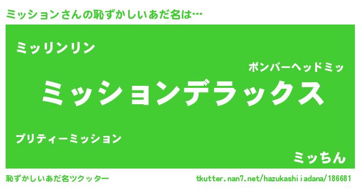 | 意味不明あだ名 | 『自称ミッション』『永久保存ミッション』 |