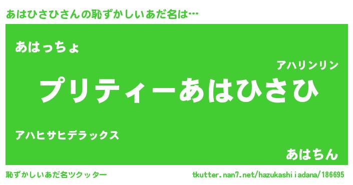 | 意味不明あだ名 | 『住所不定無職あはひさひ(6歳)』 |