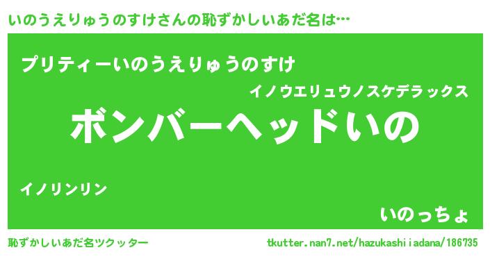 | 男性向けラノベタイトル風あだ名 | 『おまえをオタクにしてやるから、俺をいのうえりゅうのすけにしてくれ! 』 |