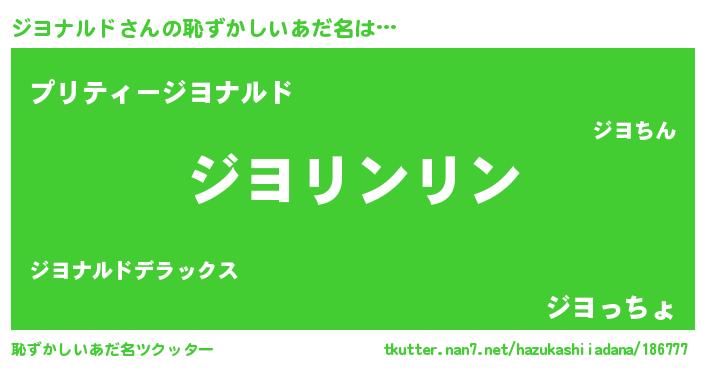 | 男性向けラノベタイトル風あだ名 | 『ジヨナルドに滅ぼされるだけの簡単なお仕事です』 |