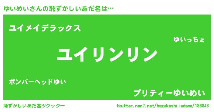 | 男性向けラノベタイトル風あだ名 | 『緋弾のユイメイ』『魔弾の王とゆいめい』 |
