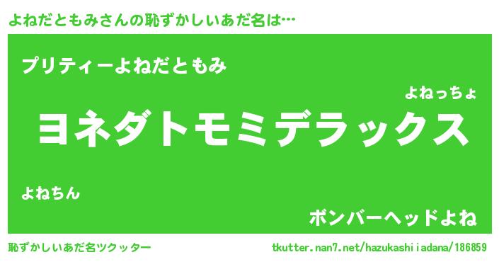 | 意味不明あだ名 | 『自称よねだともみ』 |