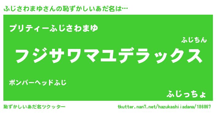 | 男性向けラノベタイトル風あだ名 | 『Re:ふじさわまゆから始める異世界生活』 |