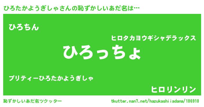 | ポケモン風あだ名 | 『ヒロタダネ』『ヒロゴンZ』 |