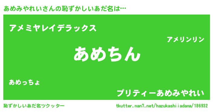 | 意味不明あだ名 | 『永久保存あめみやれい』 |