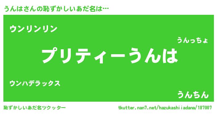 | 意味不明あだ名 | 『ペロリンうんは』『永久保存うんは』 |