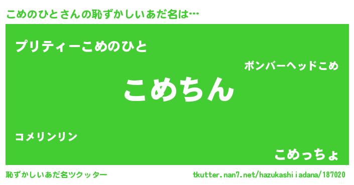 | 意味不明あだ名 | 『永久保存こめのひと』 |