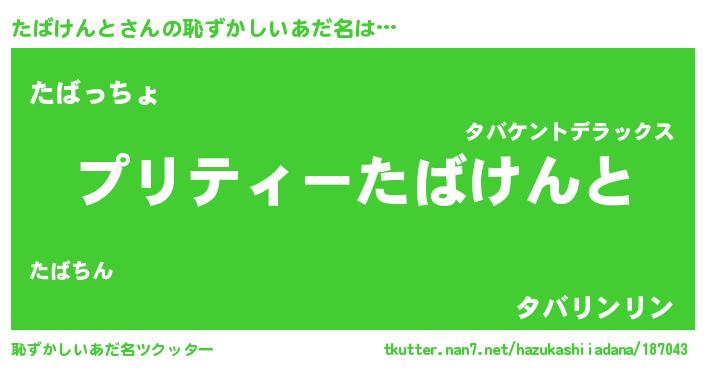 | ヘコむあだ名 | 『たばっふぃ~』『酢こんぶ』 |