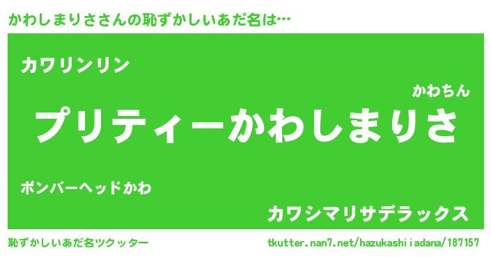 | ヒーロー風カッコイイあだ名 | 『仮面カワダー』『スーパーカワシマリサ』 |