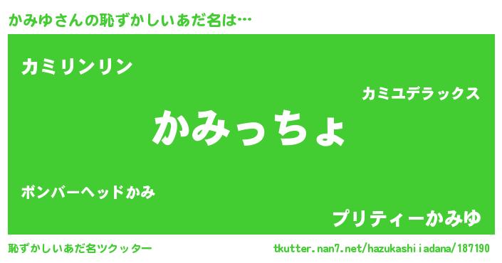 | 意味不明あだ名 | 『かみゆフォーエバー』『ペロリンかみゆ』 |