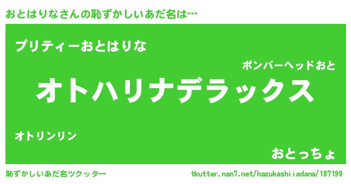 | ヒーロー風カッコイイあだ名 | 『最強戦士オトハリナ』『仮面オトダー』 |
