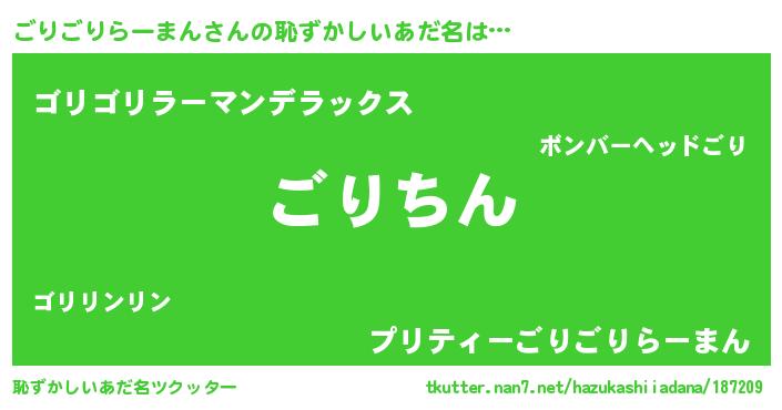 | ヘコむあだ名 | 『ごりごりらーまん(遠い目)』『ごりぷりん』 |