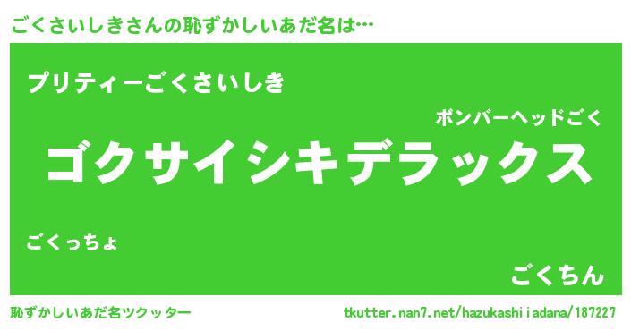 | ヒーロー風カッコイイあだ名 | 『ウルトラ戦士ゴクサイシキ』 |